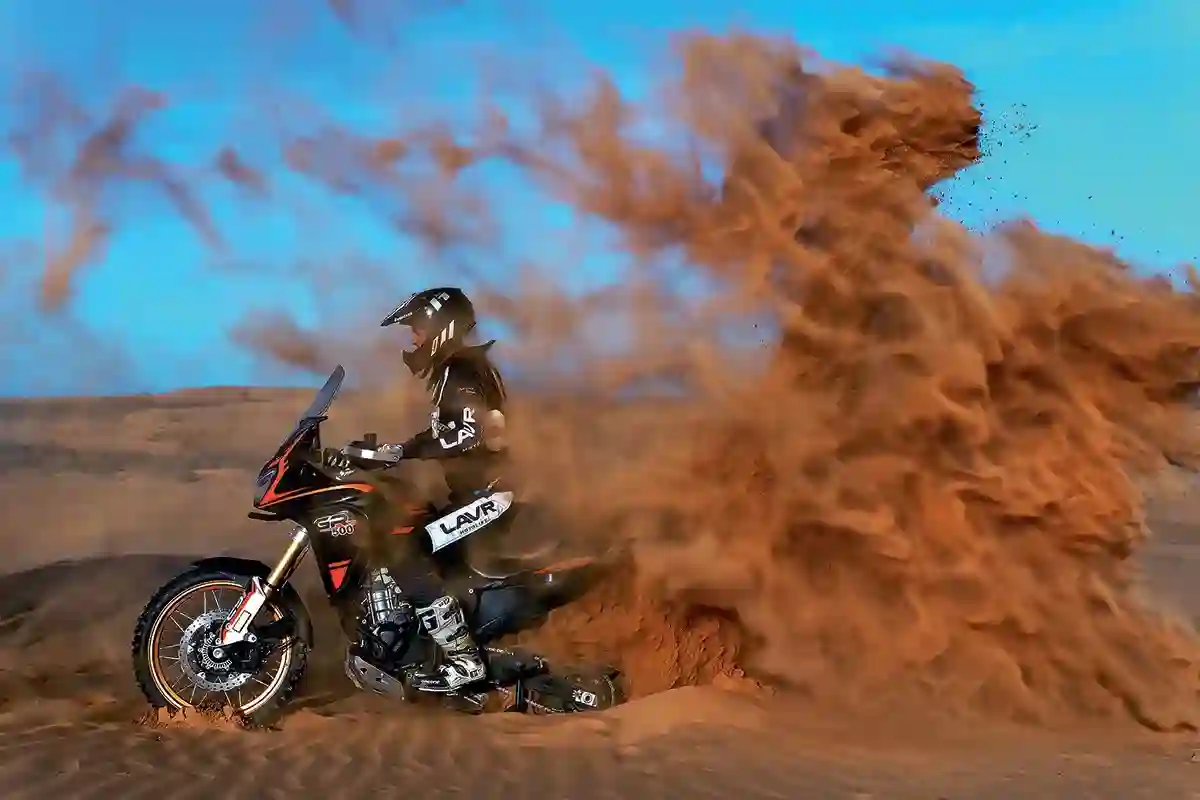 Первые 50 км, по словам мотоциклистов, оказались особенно сложными — на «рваной» жесткой трассе руки забивались как на мотокроссе. Затем начались песчаные прямики, требовавшие хорошей скорости, и гонщики наконец-то смогли открыть газ. К сожалению, когда на одном из GR 500 лопнула шина, до финиша оставалось еще почти 200 км: пришлось ждать механиков с новой покрышкой, однако больше никаких неприятностей не произошло, и до финиша второго спецучастка байки доехали.